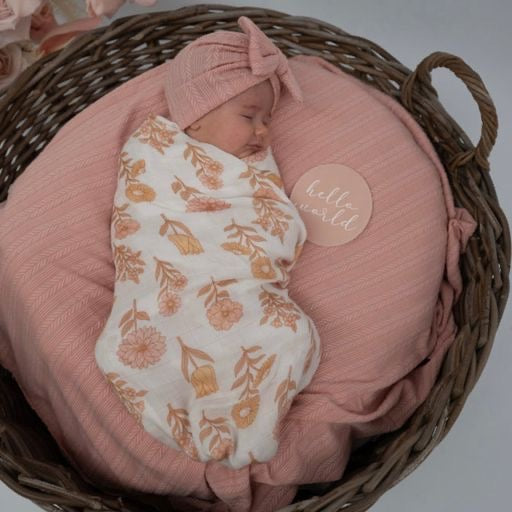 Snuggly Jacks - Swan Jersey Swaddle Stretch Wrap & Top Knot Set