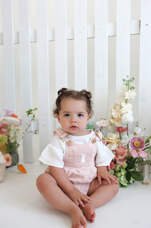 'My First Easter' Singlet Knit Frill Romper - Pink Lemonade