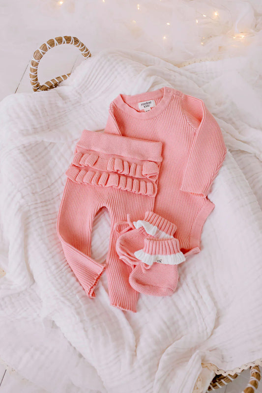 Frilly Ribbed Knit Bodysuit Peach