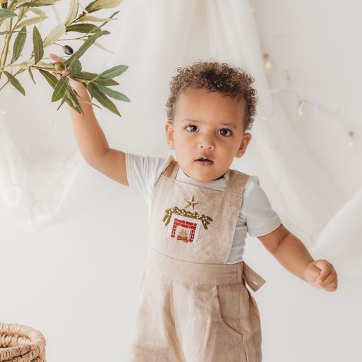 Sweet Child of Mine - Embroidered Oak Overalls - Cosy Fireplace