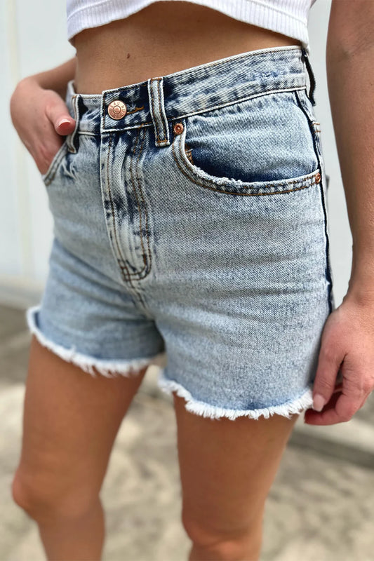 Beau Hudson Blue Daisy High-Waisted Denim Shorts Women's
