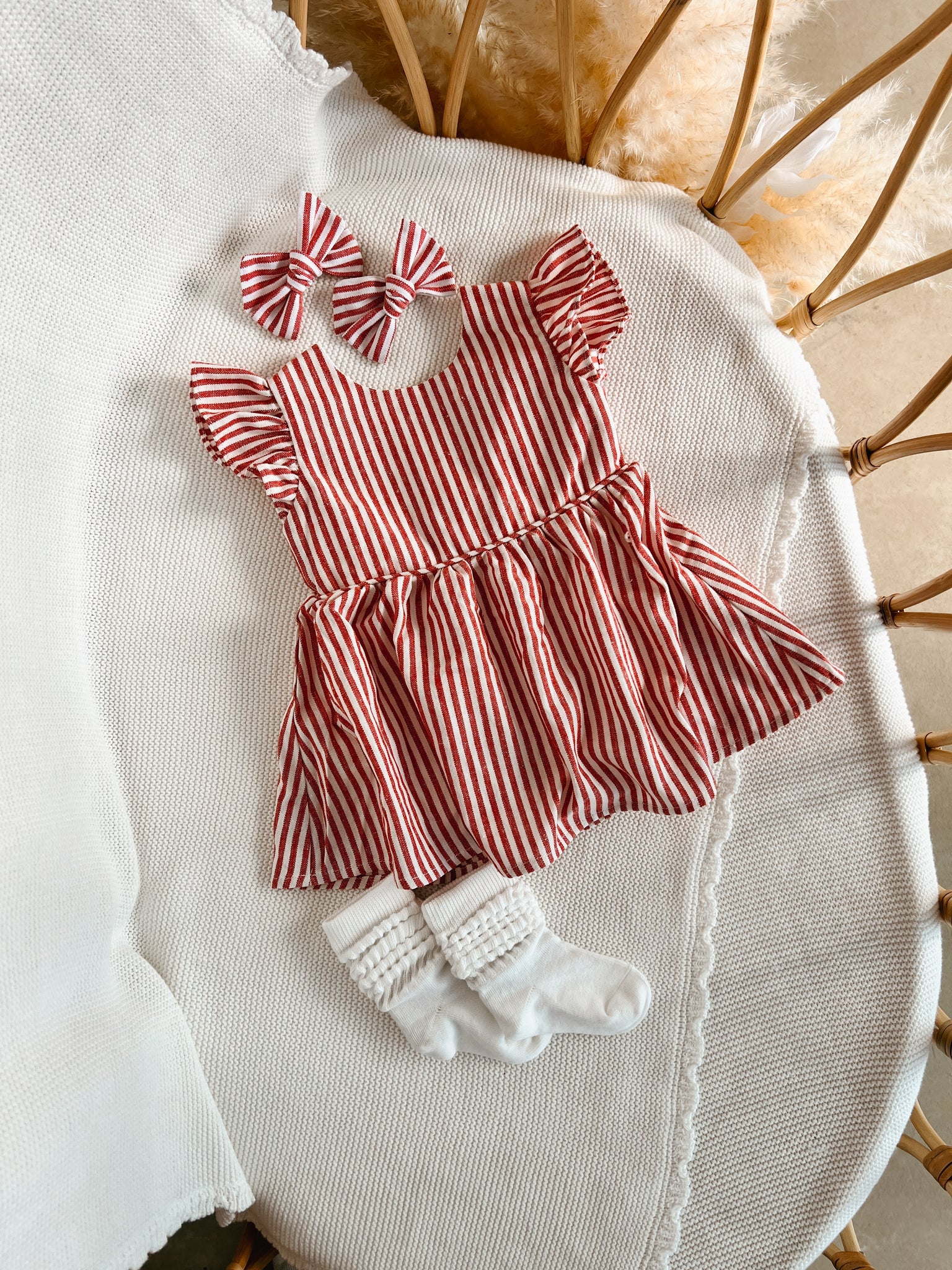 The Candy Stripe Dress is the perfect Christmas piece for your little love. With an adorable candy cane stripe print and beautiful linen bow tie back, it is lightweight and breathable ensuring maximum comfort. A must-have wardrobe staple this season!