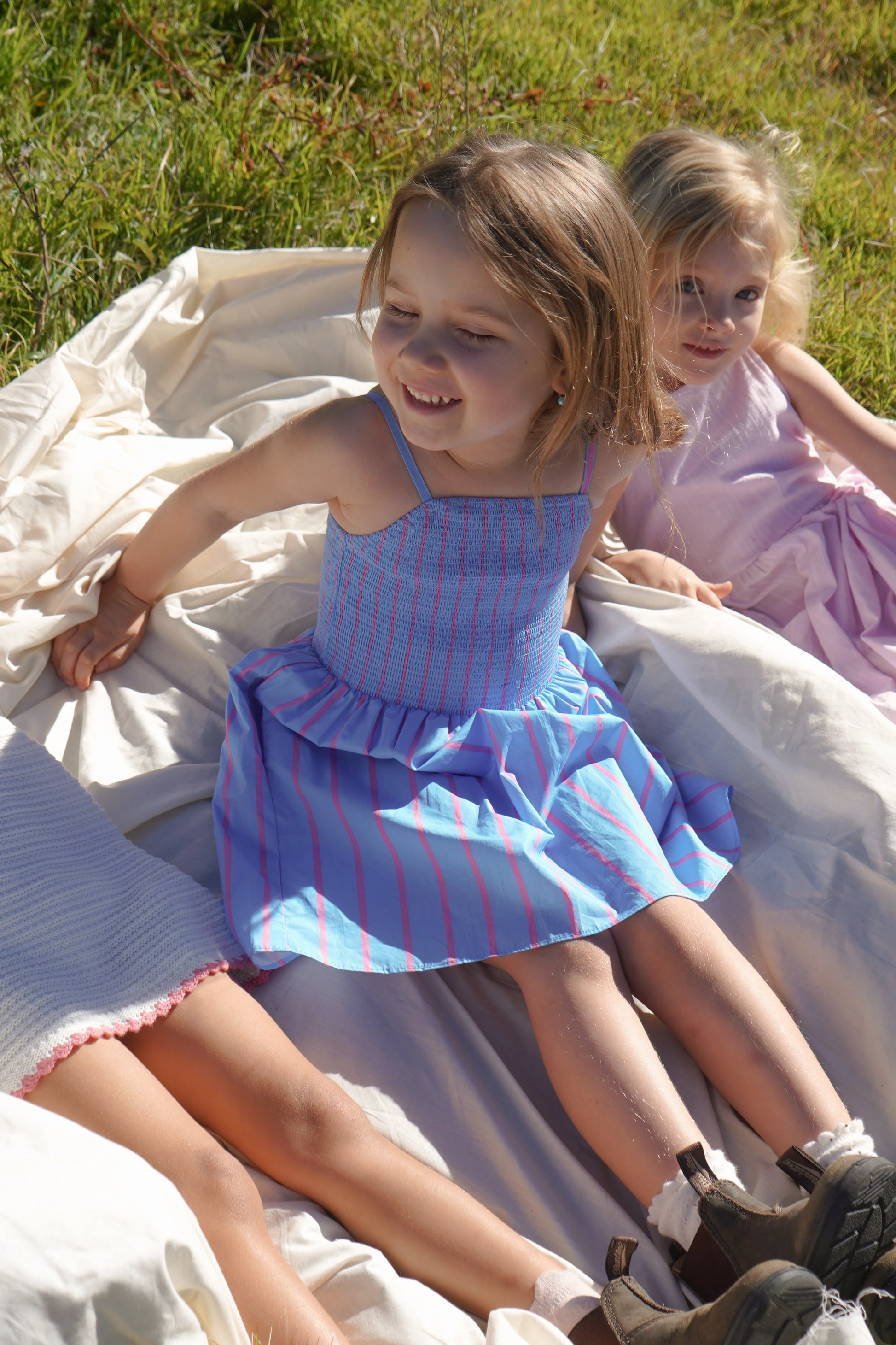 Made from soft, breathable 100% cotton, Cleo features a smocked bodice that offers the perfect balance of stretch and comfort, along with adjustable straps to grow with your little one. The bold blue base with vibrant pink stripes gives this piece a playful energy that stands out in every setting — from beach days to birthday parties. Whether she’s off on an adventure or simply soaking up the joys of everyday life, the Cleo Stripe Dress is made to move with her and keep her feeling confident and carefree.