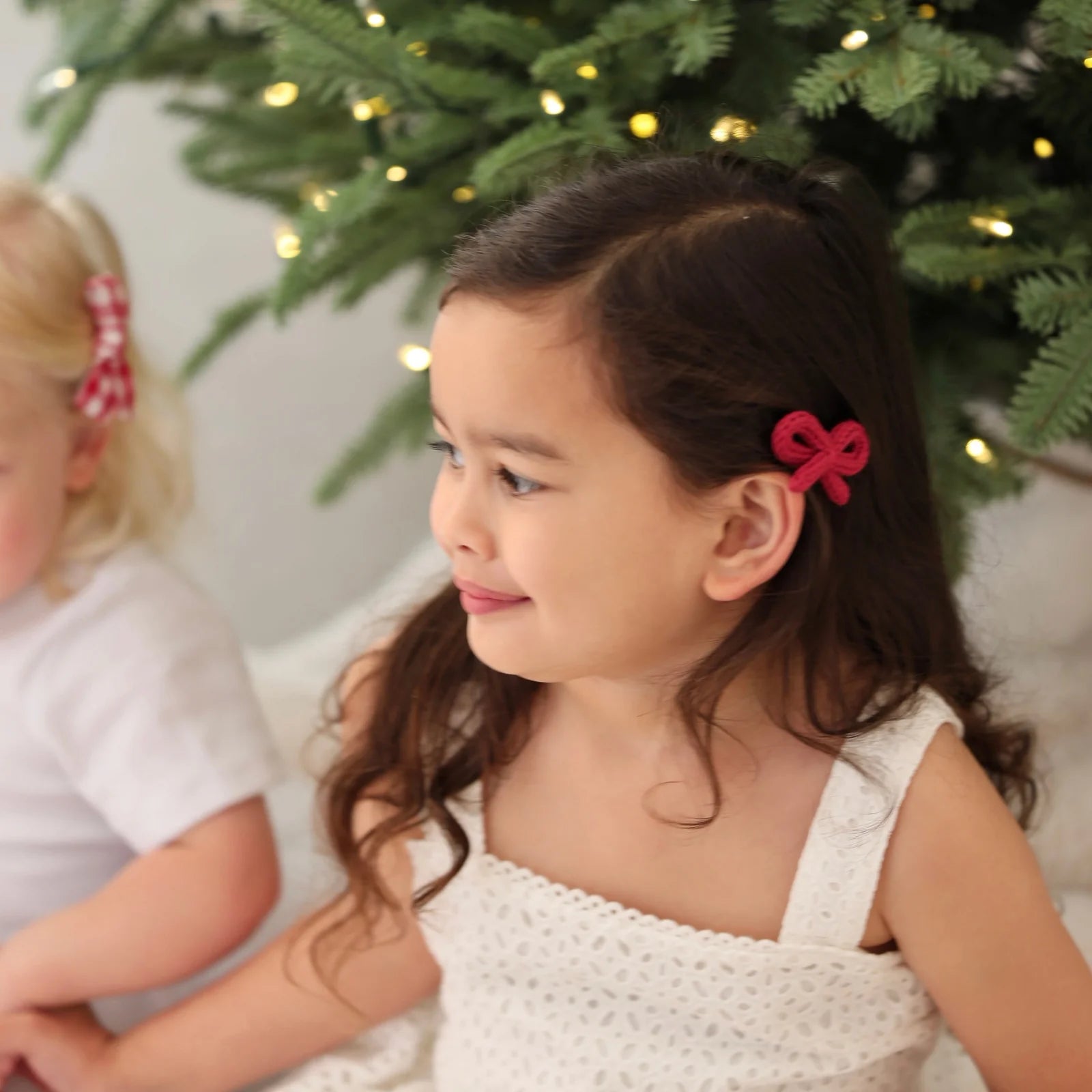 Merry Berry adds a festive pop of colour with its deep red crochet ribbon and timeless bow shape. A cozy yet classic piece for the holiday season.