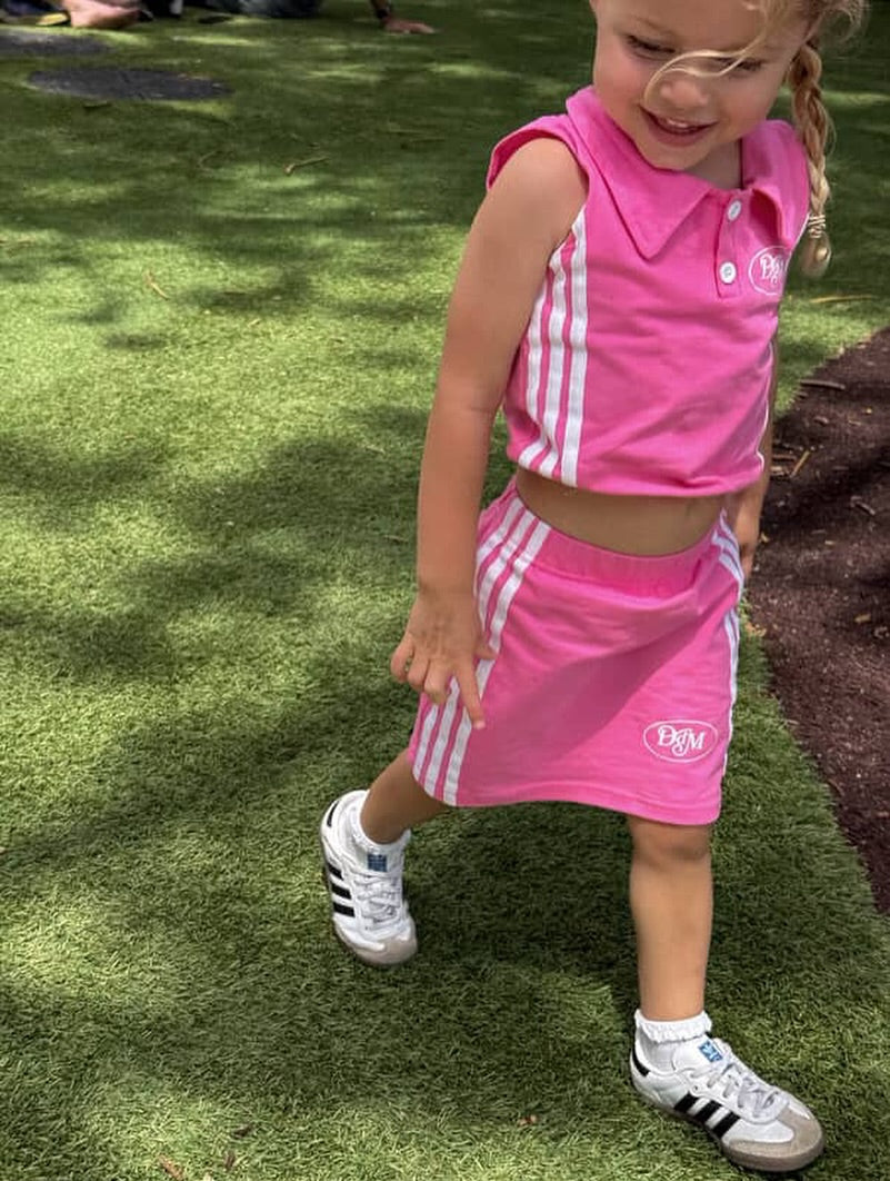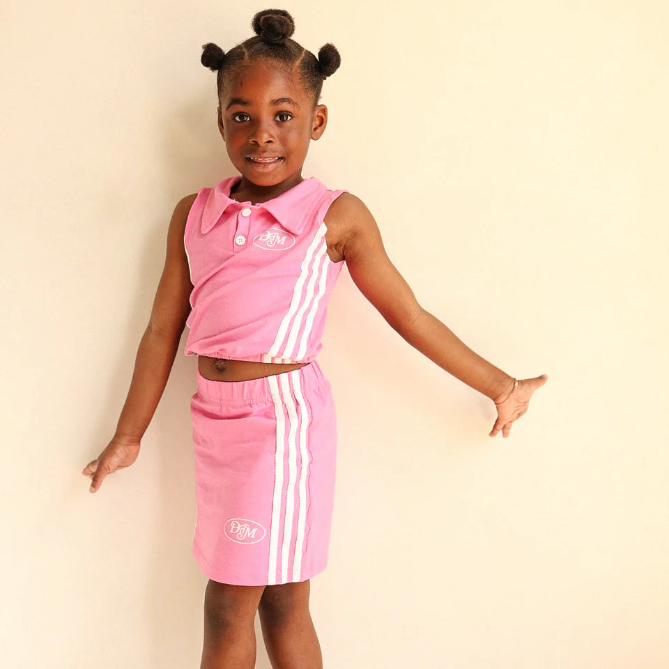 The Court Set brings all the 90s tennis club energy — a sleeveless top paired with a matching skirt made for twirls, chaos, and court-side cuteness.