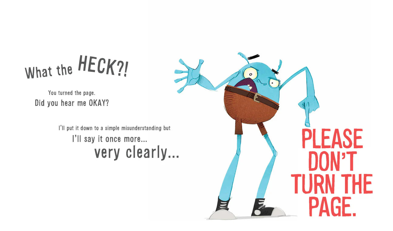 - Children will be kept enthralled as the character speaks directly to them, and urges them not to turn the pages.
