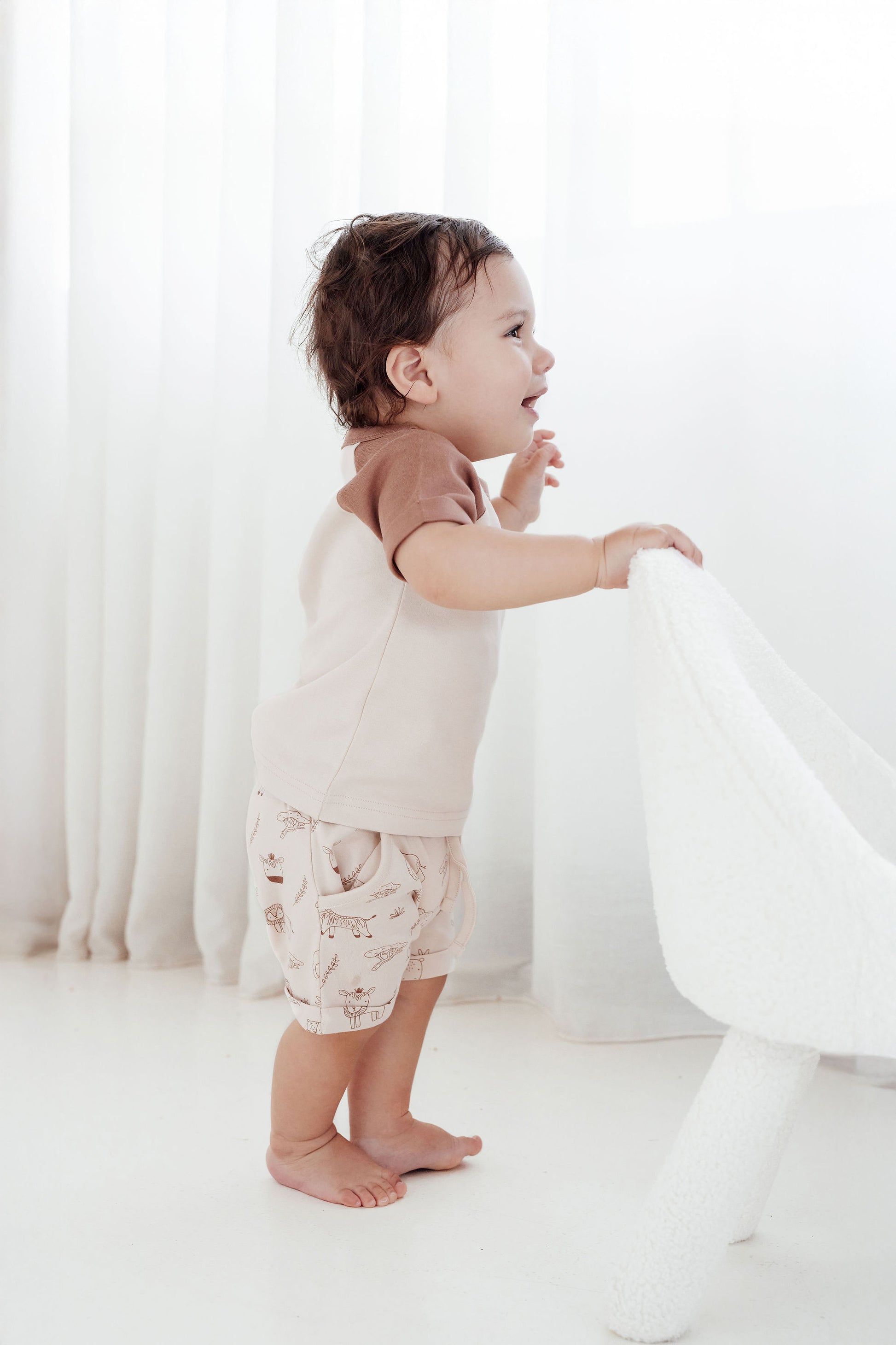 Made from GOTS certified organic cotton, the tee features contrasting short sleeves, embroidered lion to front chest and faux wood buttons to shoulder for easy changes. 100% Certified organic cotton #USB008294. Made in India. Wash according to care instructions.
