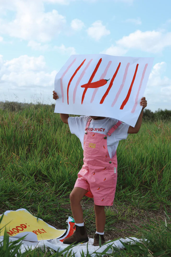 The Chilli Overalls. They're for the small human who’s equal parts sweet and spicy. Crafted from a durable but soft 100% cotton twill, these are built for serious play. With scattered embroidered chillies all over, this is a piece that’s as full of personality as they are.