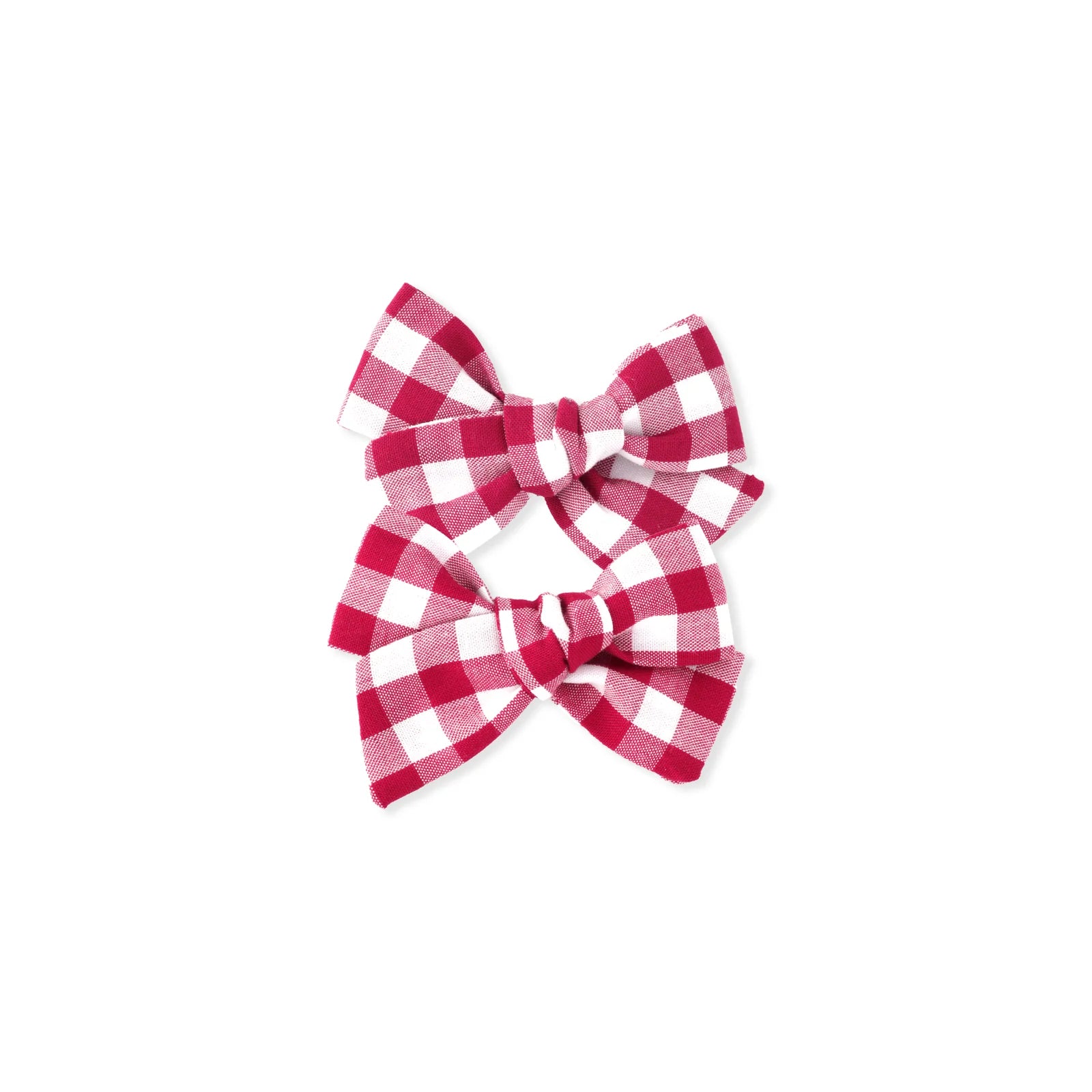 This pigtail set includes two mini pinwheel bows on 4cm alligator clips with teeth (one left-side clip and one right-side clip)