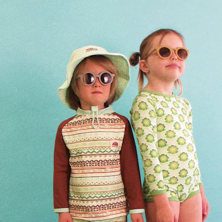 This adorable and cotton terry bucket hat is ideal for beach fun, kindy sun and all day park adventures. Made for kids to enjoy every moment while being sun-safe, and pairs perfectly with swimwear and our back-to-kindy collection.