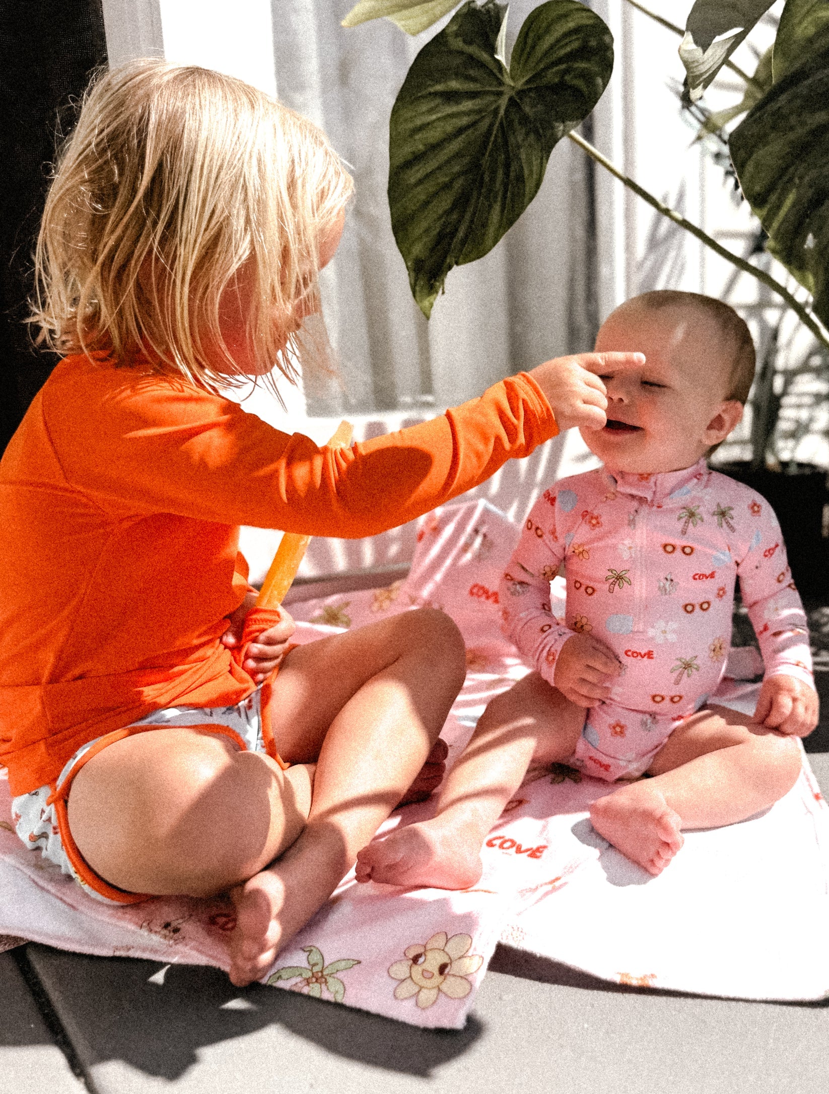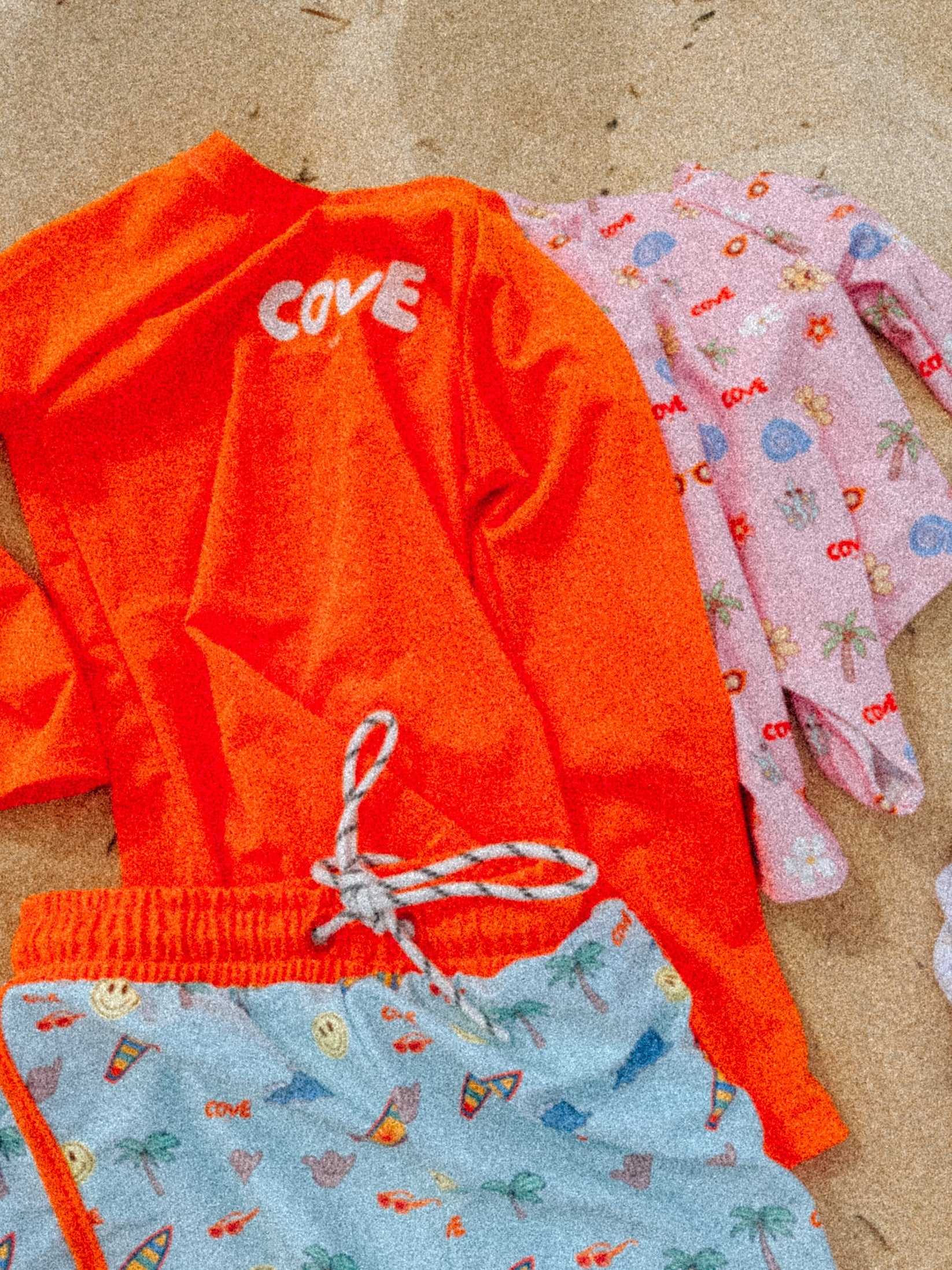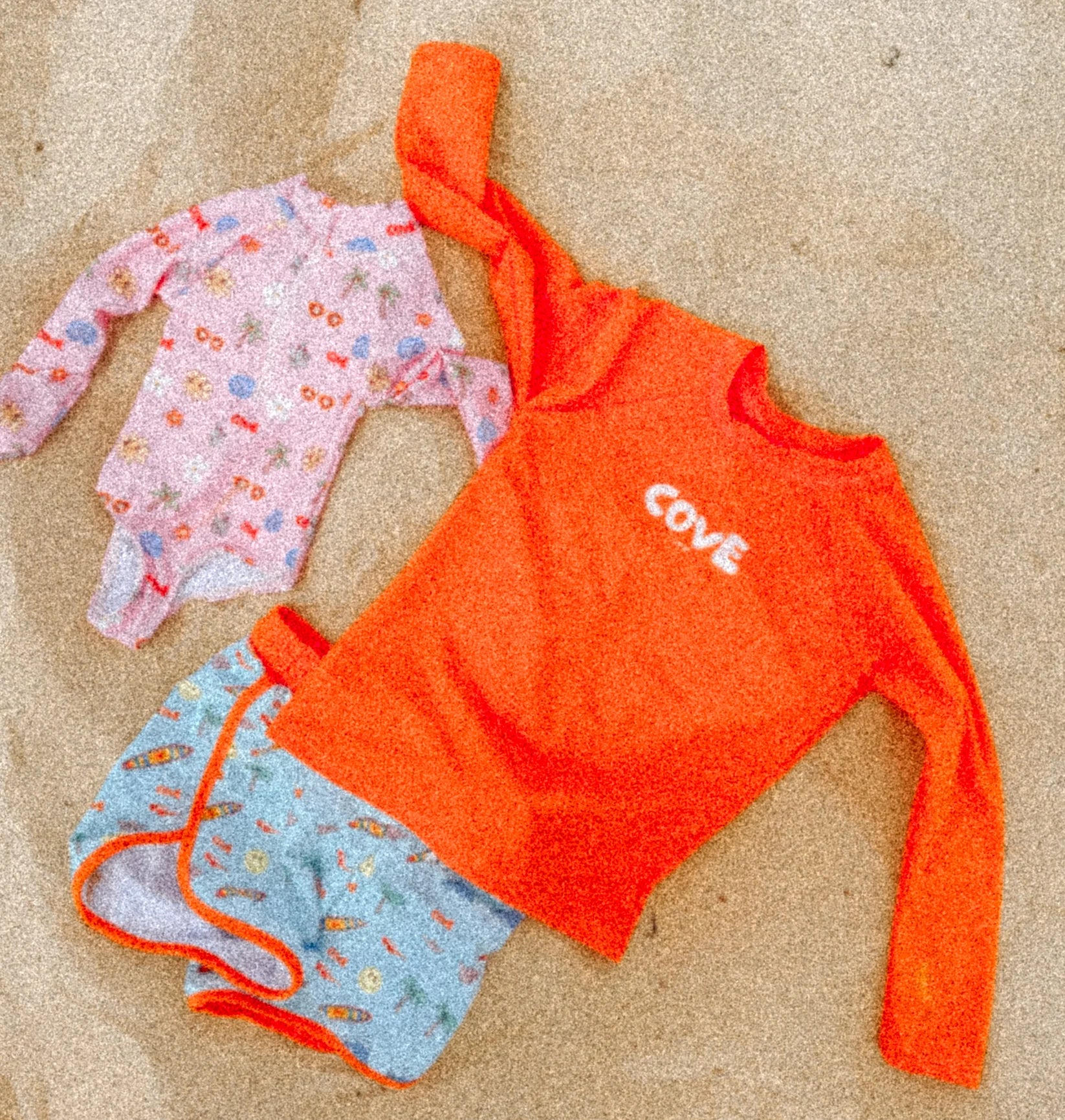 Made from high-quality, quick-dry fabric with UPF50+ sun protection, it’s lightweight, comfy, and built for all-day wear at the beach or pool. The vibrant pop of colour keeps your mini easy to spot in the surf, while the retro COVE logo gives it that signature Cove Lane vibe.
