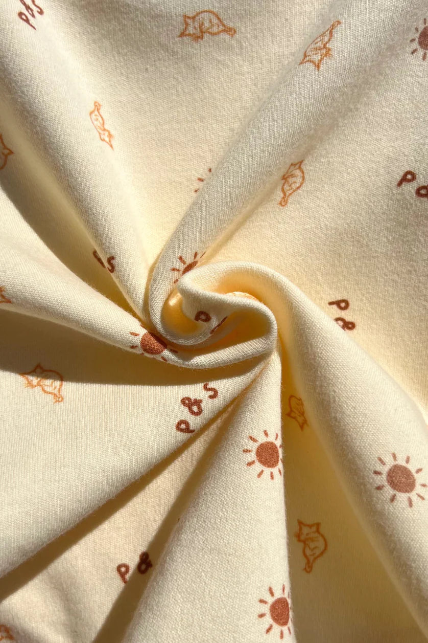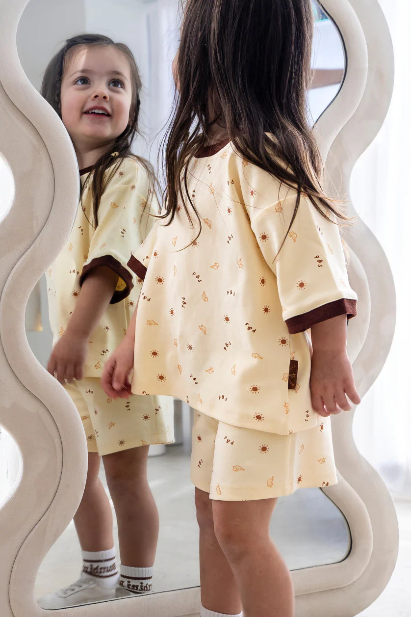 Available in Sol, a print that feels like a golden afternoon in Italy, with an Aussie twist. Sprinkled with suns, possums and signature P&S touch, it's the must-have spring print your little one's wardrobe has been waiting for.