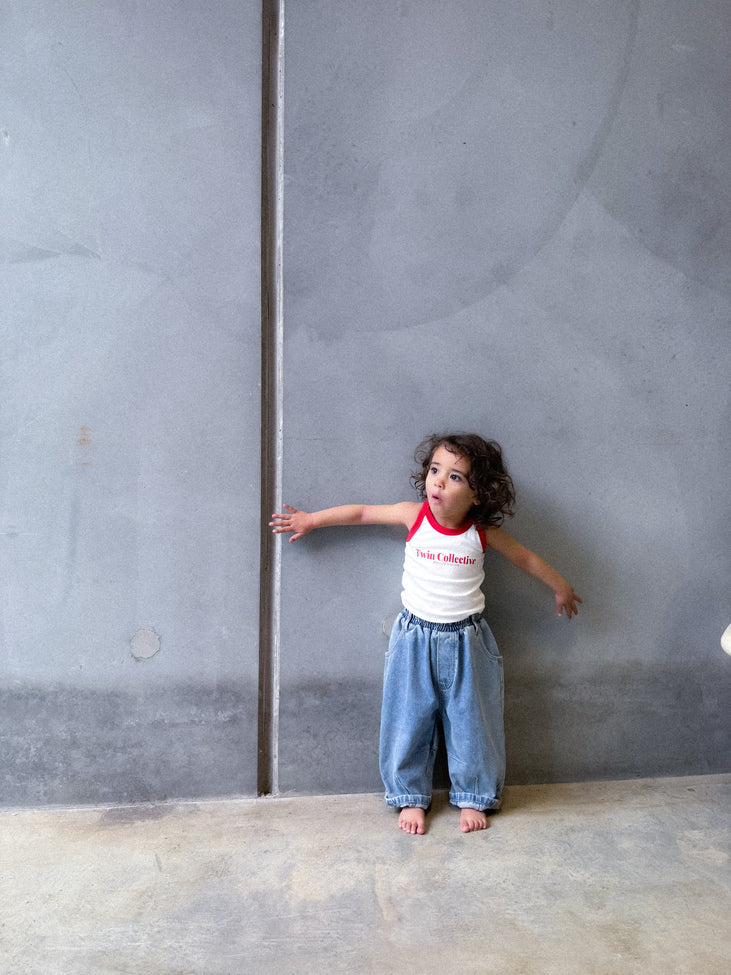 Our kids Halter Tank is designed to be slim fitting, but with the stretchy rib jersey fabric, this can be worn loose & become tighter as your child grows allowing them to wear for many seasons. The Tank can be worn as a halter or tank with the straps tied at the back. Our retro inspired Logo Print is inspired by our love of 70s halter tops & retro font logo prints.