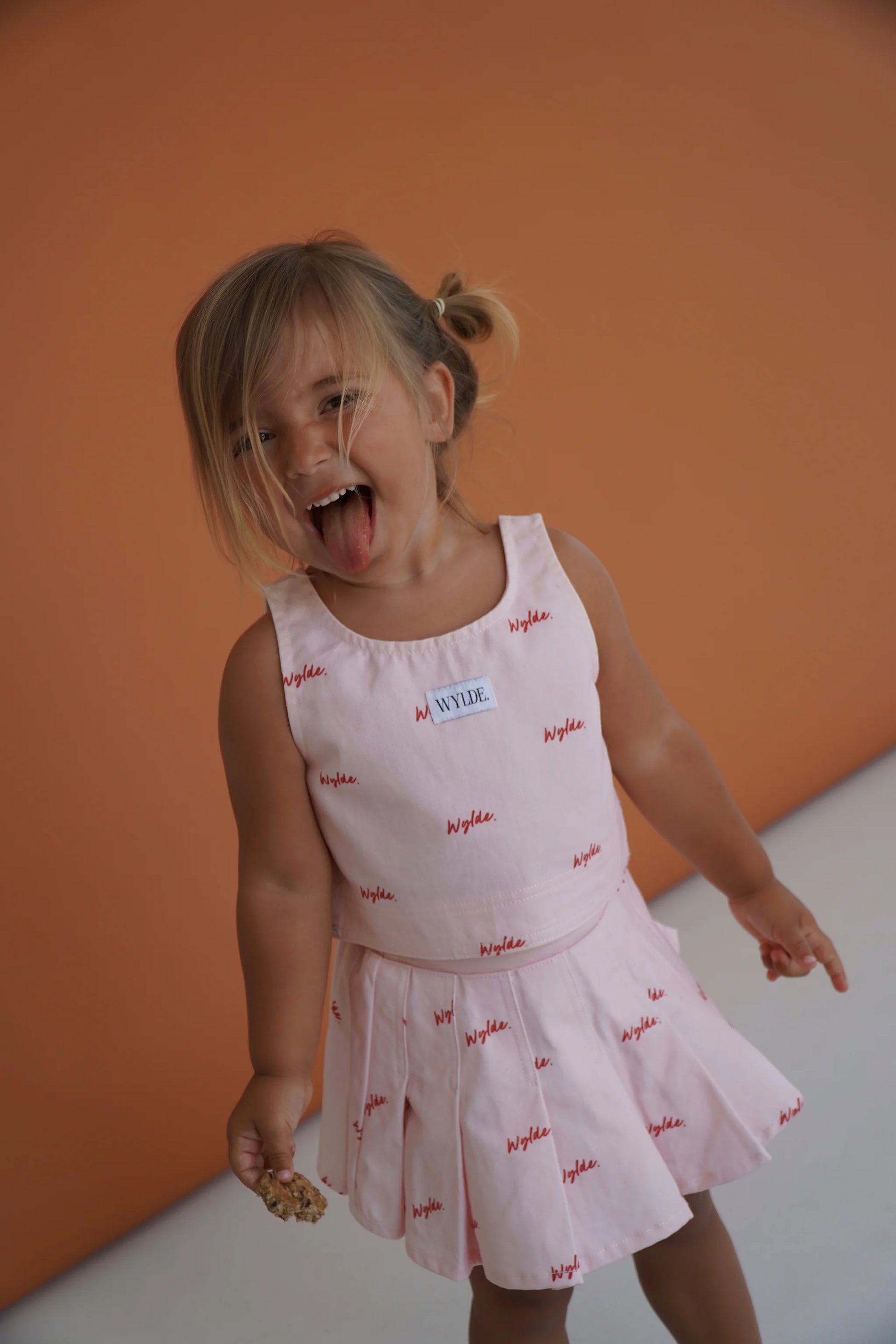 Made for the minis with big attitudes and even bigger style. The Riot Girl Set brings all the bold vibes with its pink base, red “Wylde” graffiti and matching skirt-and-crop moment. It’s loud, playful and a little bit rebellious. The perfect outfit for twirls, tantrums, giggles and chaos (the cute kind). A true Wylde child essential.